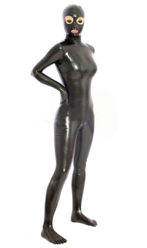 This hand tailored full body catsuit made from 0.4mm sheet rubber is available for both male and female. Suit includes feet with toes, gloves and a hood with eyes, nose and mouth holes.