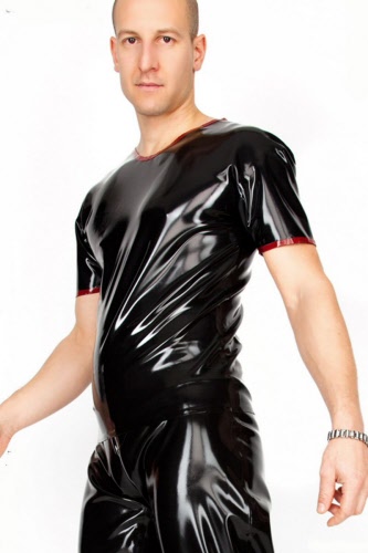 This is a tailor made mens rubber leotard/ corset with open crotch. Available in Black or Red, and in a variety sizes.